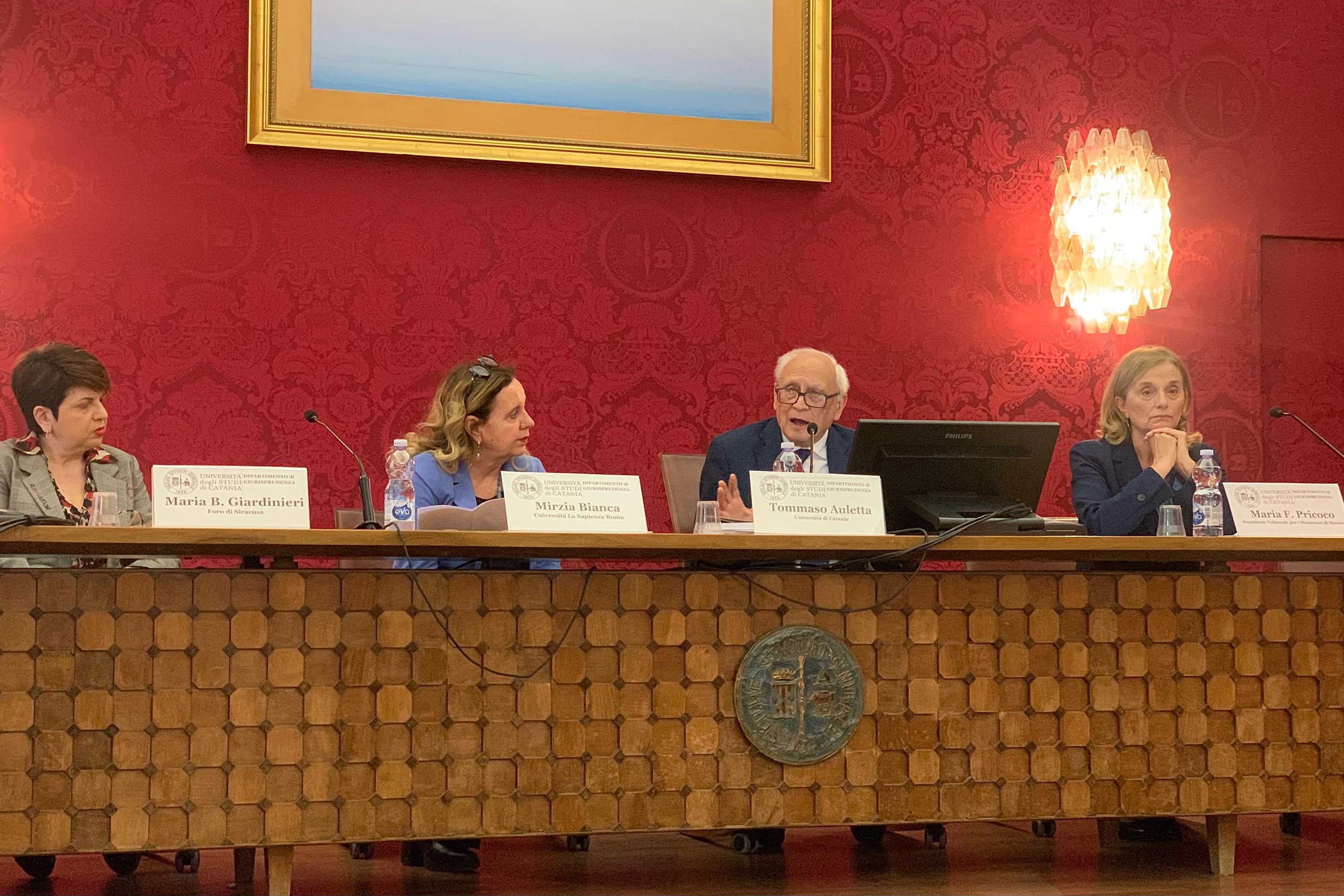 A seguire è intervenuta Mirzia Bianca, docente di Diritto civile all’Università La Sapienza di Roma, ma originaria di Catania. Proprio in quell’aula ha tenuto l’ultima lezione il padre, il prof. Cesare Massimo Bianca recentemente scomparso.