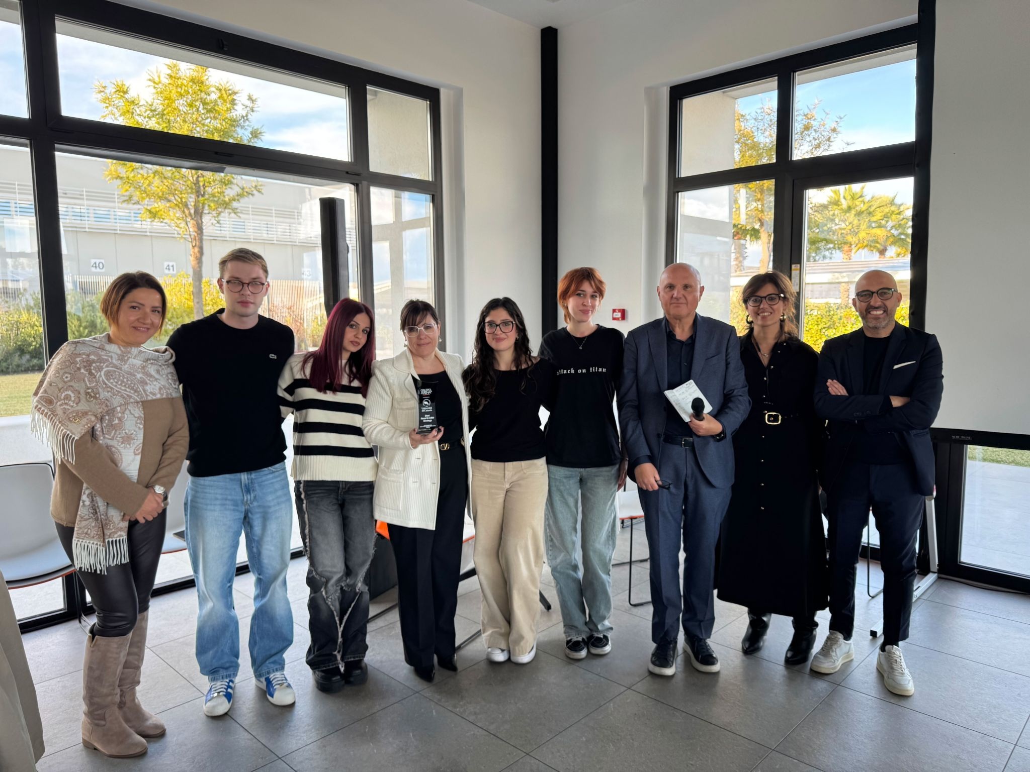 Gli studenti e le studentesse insieme con i docenti e i rappresentanti del Gruppo Arena