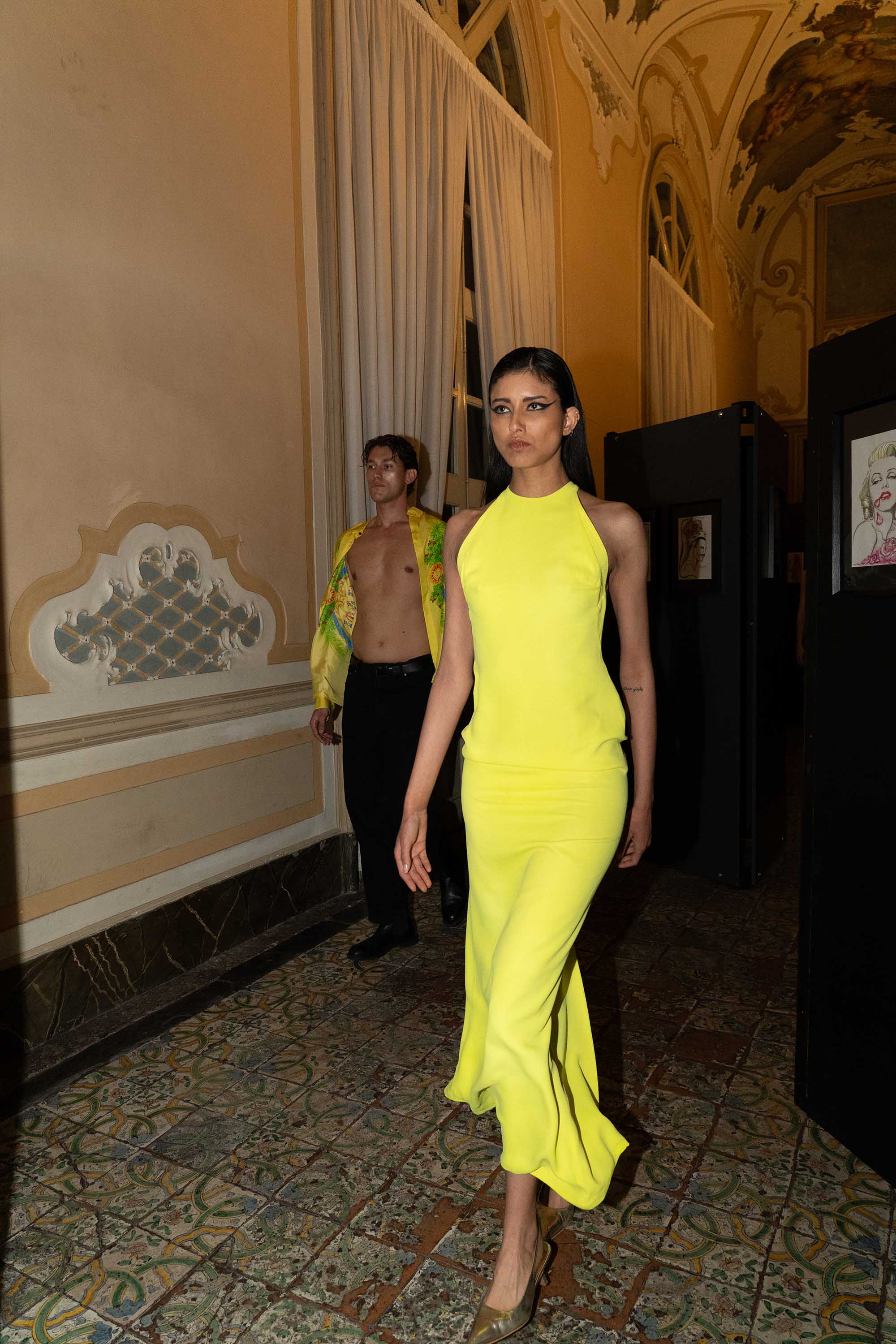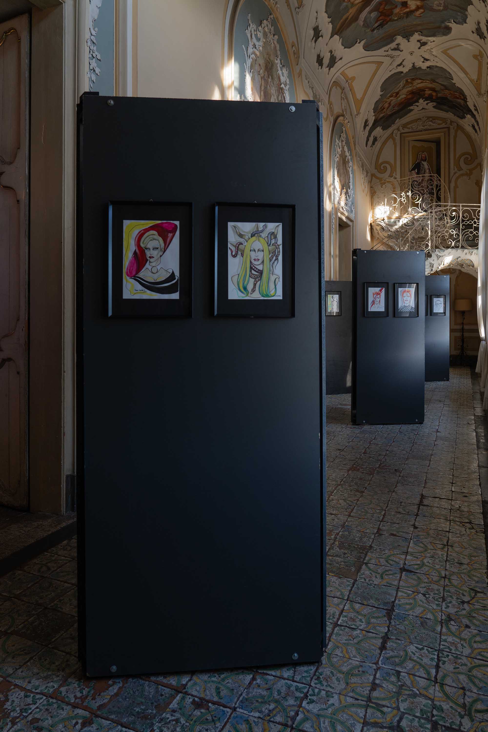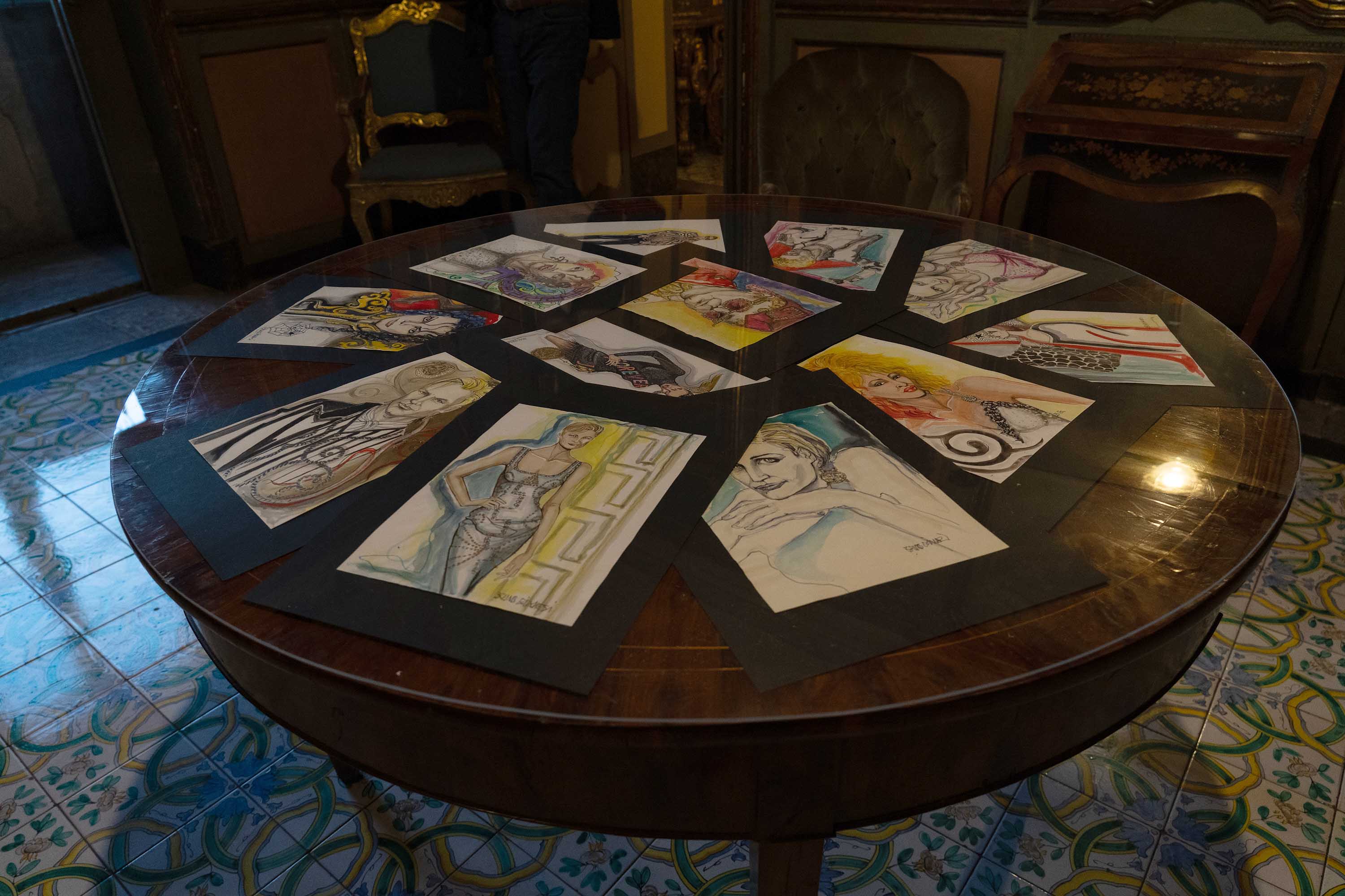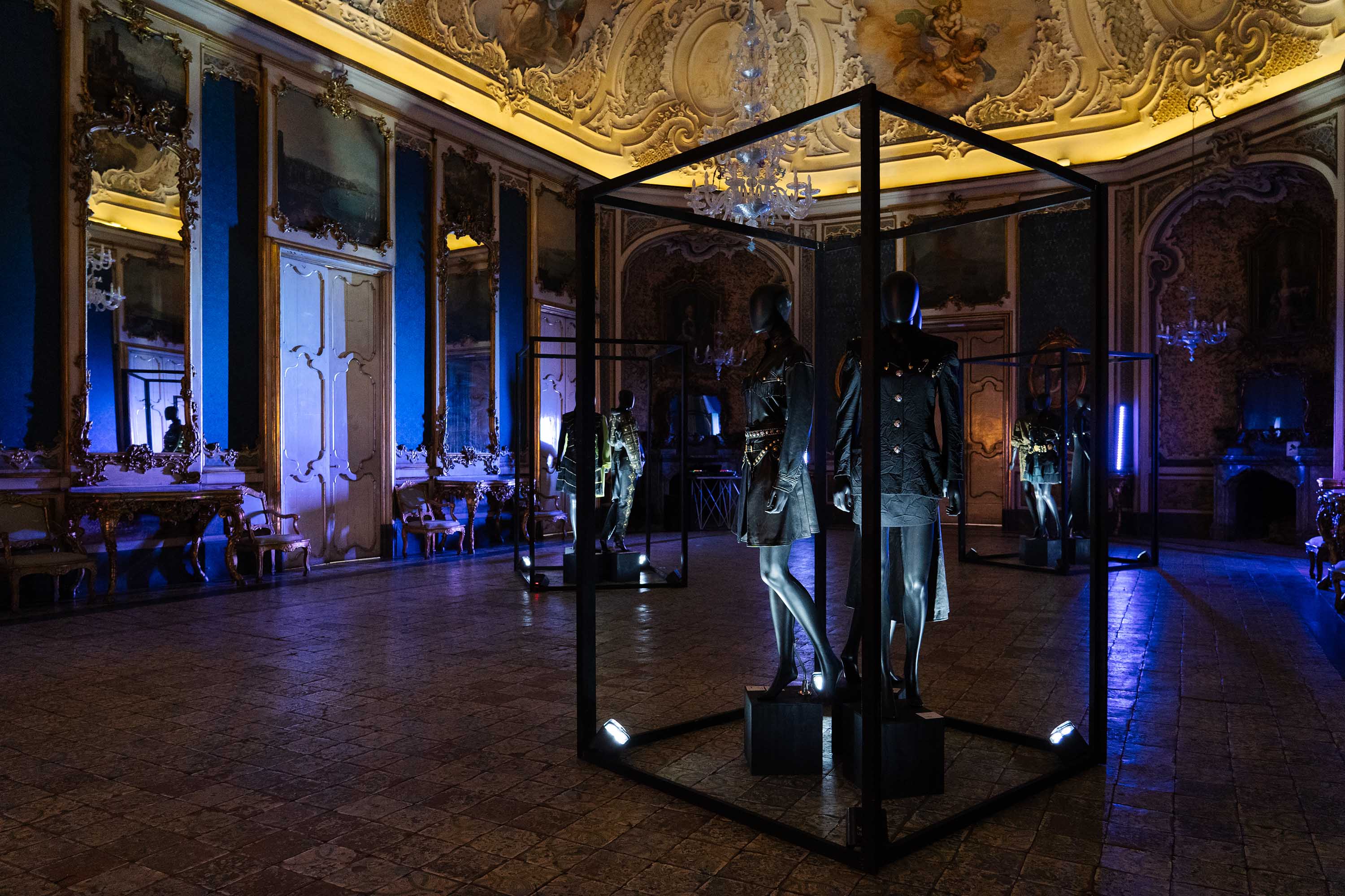 Nella galleria laterale, accanto al salone da ballo, è stata, invece, allestita una mostra dedicata alle Icone del Novecento disegnate da Bruno Gianesi, già capo ufficio stile uomo e balletto di Gianni Versace.