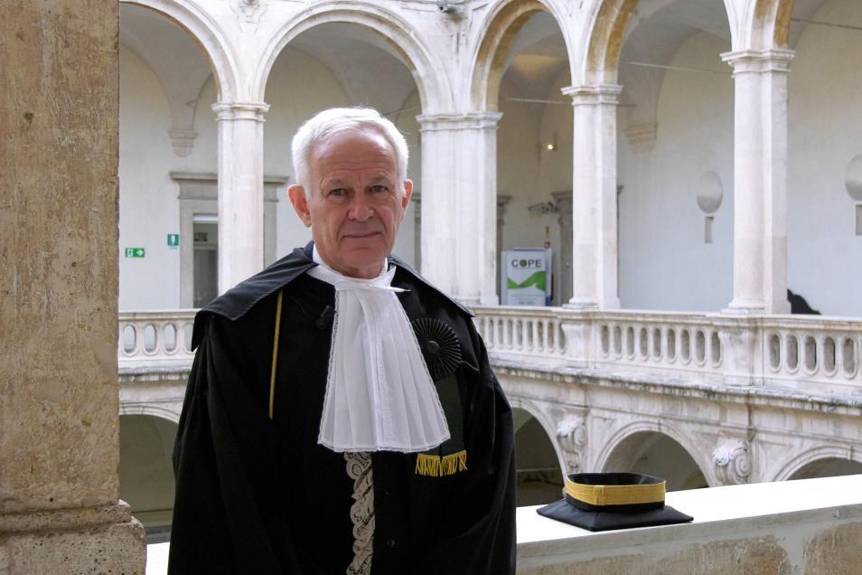 Nella sua lectio doctoralis ha parlato dell’influenza dei gradienti nei fenomeni naturali. In natura – ha spiegato - tutto si muove grazie ai gradienti, cioè al modo in cui delle quantità (come temperatura, pressione, colore, altezza, concentrazione, potenziale elettrico) variano da un istante all’altro o da un punto all’altro nello spazio. Succede nella fisica — come spiegano la meccanica quantistica o le leggi di Newton, ma anche la relatività di Einstein — e succede anche nella biologia, dove la vita delle cellule dipende da continui scambi di energia e sostanze. Ogni fenomeno, dal battito del cuore fino a un terremoto, nasce proprio da questi sbilanciamenti che mettono in moto i processi naturali. E anche la Terra segue la stessa logica: dal suo nucleo fino alla superficie, tutto — il campo magnetico, il movimento delle placche, le eruzioni vulcaniche, le frane — è guidato da gradienti fisici. E più forte è il gradiente, maggiore è l’energia che può essere rilasciata.