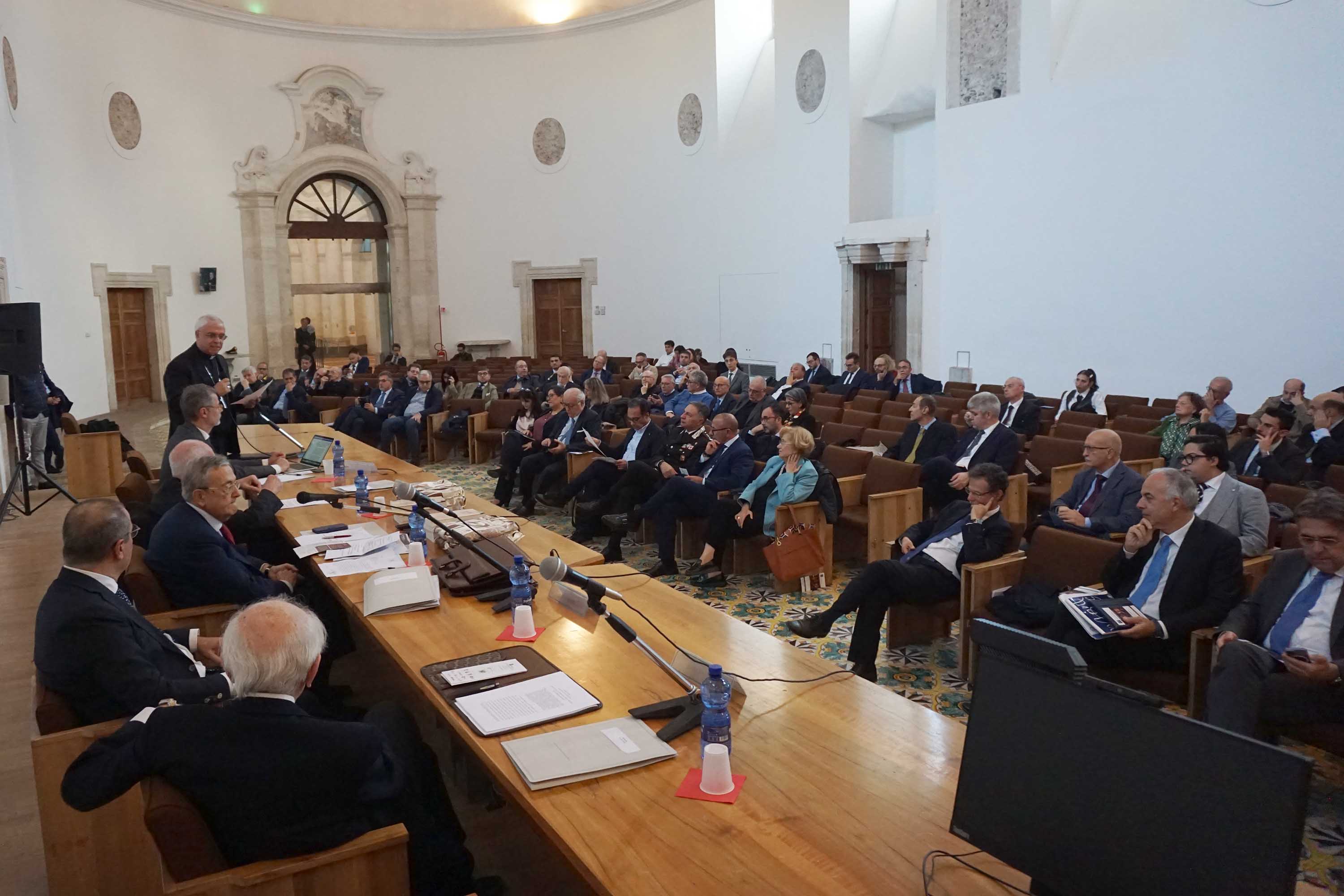 Un momento dei lavori nell'aula magna del Monastero dei Benedettini