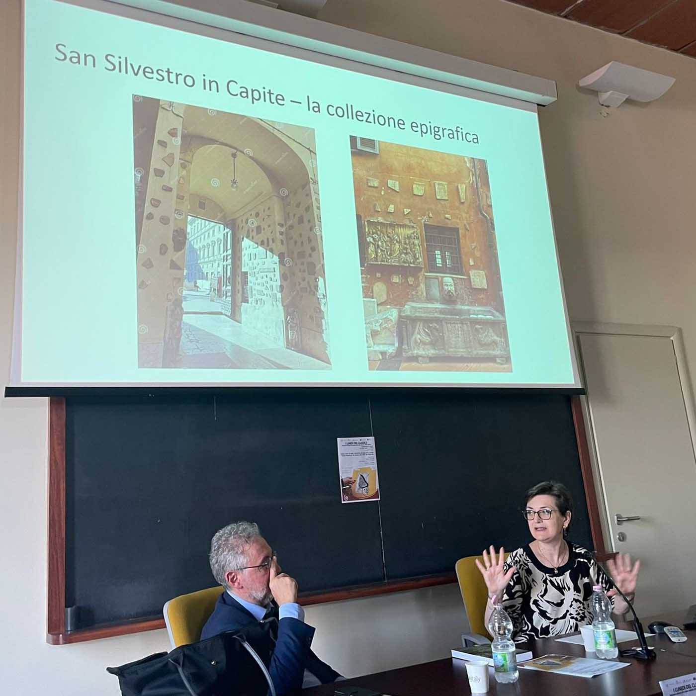 A seguire, nell’aula "La Rosa" di Palazzo Ingrassia, è intervenuta Silvia Orlandi, docente di Epigrafia Latina a “La Sapienza” Università di Roma, responsabile della digitalizzazione nella banca dati EDR e presidentessa dell’Association Internationale d’Epigraphie Grecque et Latine (AIEGL).