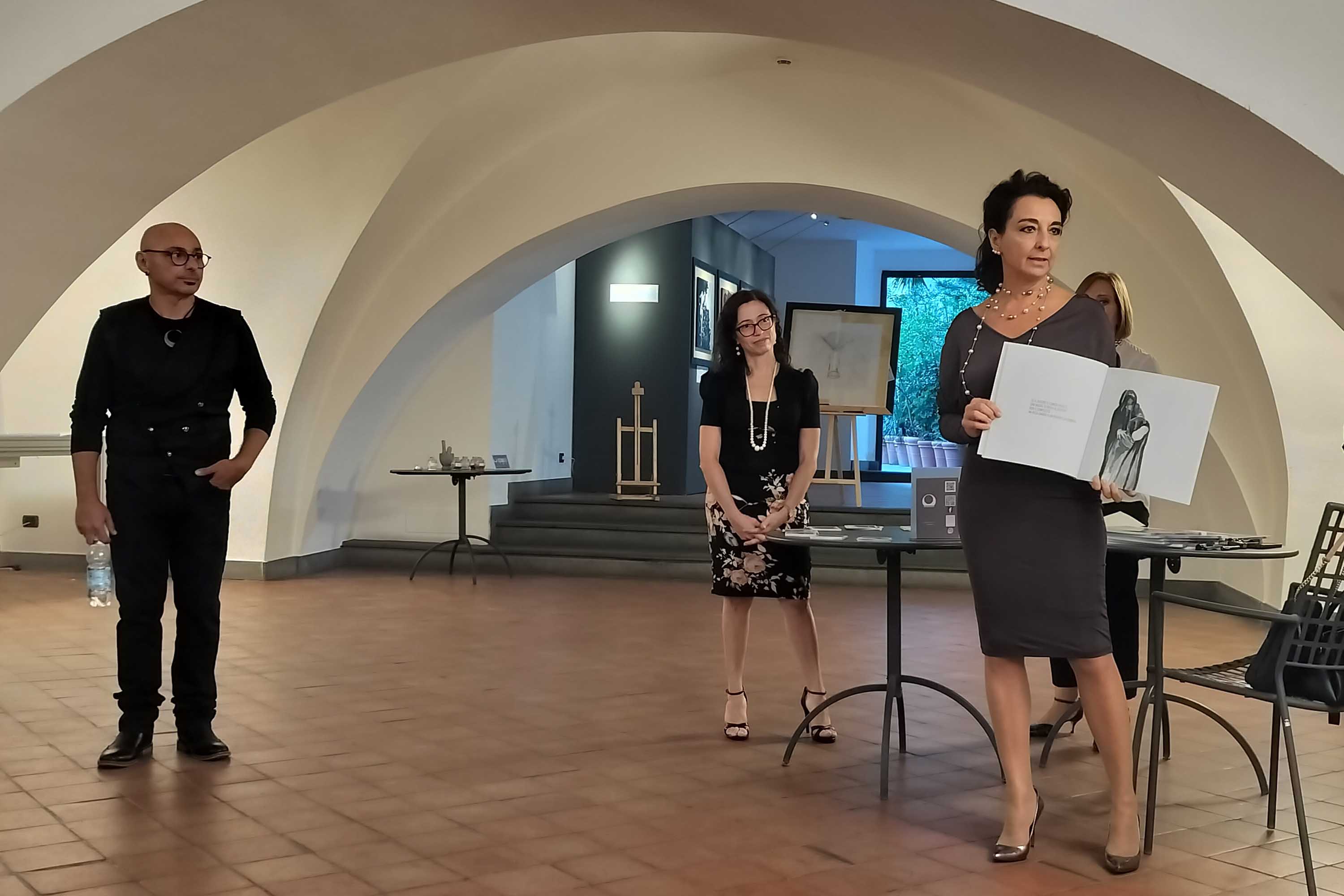Più che una presentazione, i primi momenti della mostra sono stati una vera e propria chiacchierata tra Giorgio, Giada e la professoressa Cristina Soraci, docente di storia romana all’Università di Catania.