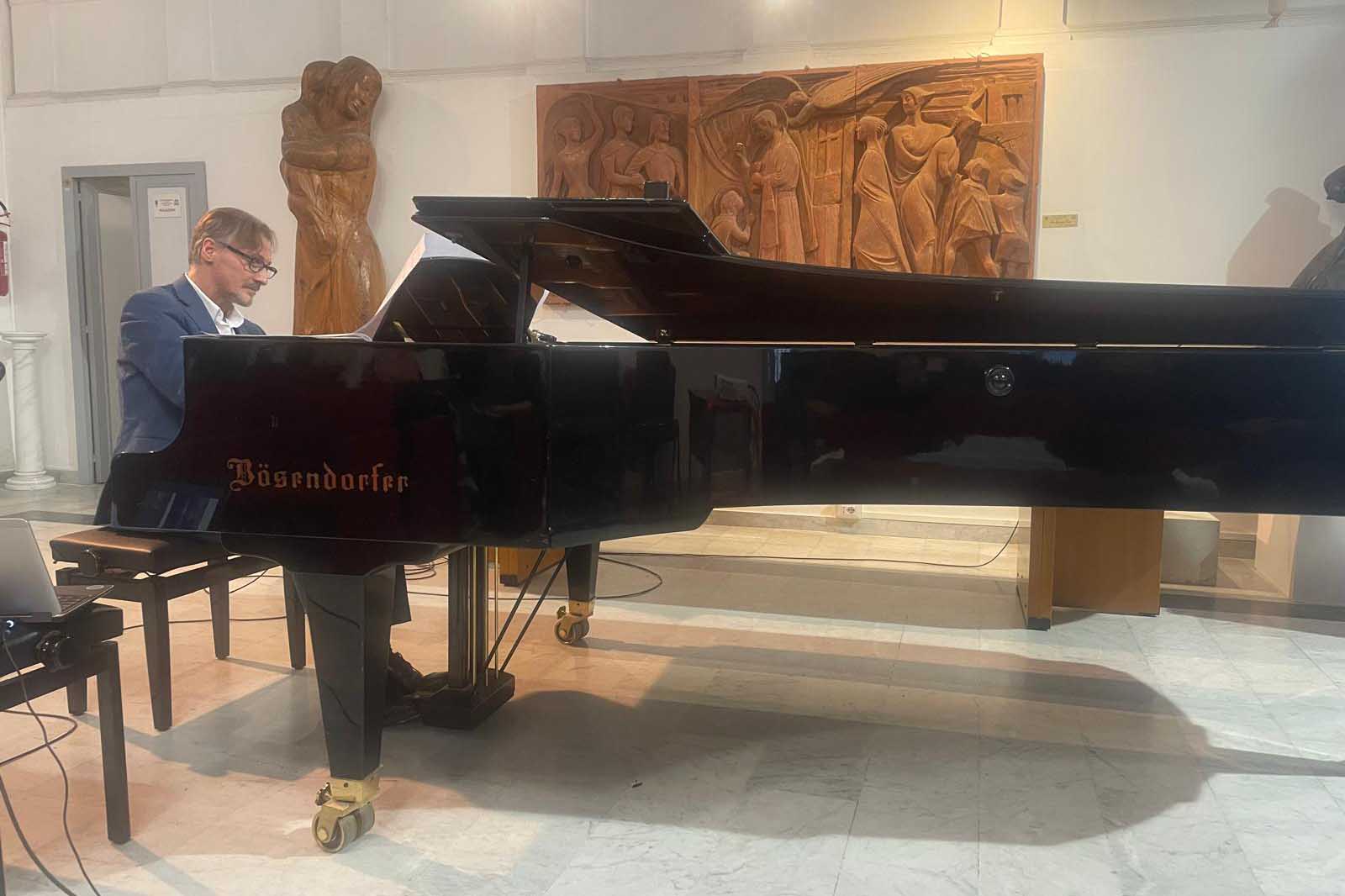 Nel suo contributo Il racconto della natura tra musica, educazione e in-canto, Leonardo Acone, nella doppia veste di docente e pianista, ha intrecciato musica, narrazione e formazione, facendo del pianoforte uno strumento di evocazione e di relazione con gli elementi naturali — la luna, la notte, l’acqua, gli alberi — e con l’universo emotivo e simbolico dell’infanzia.