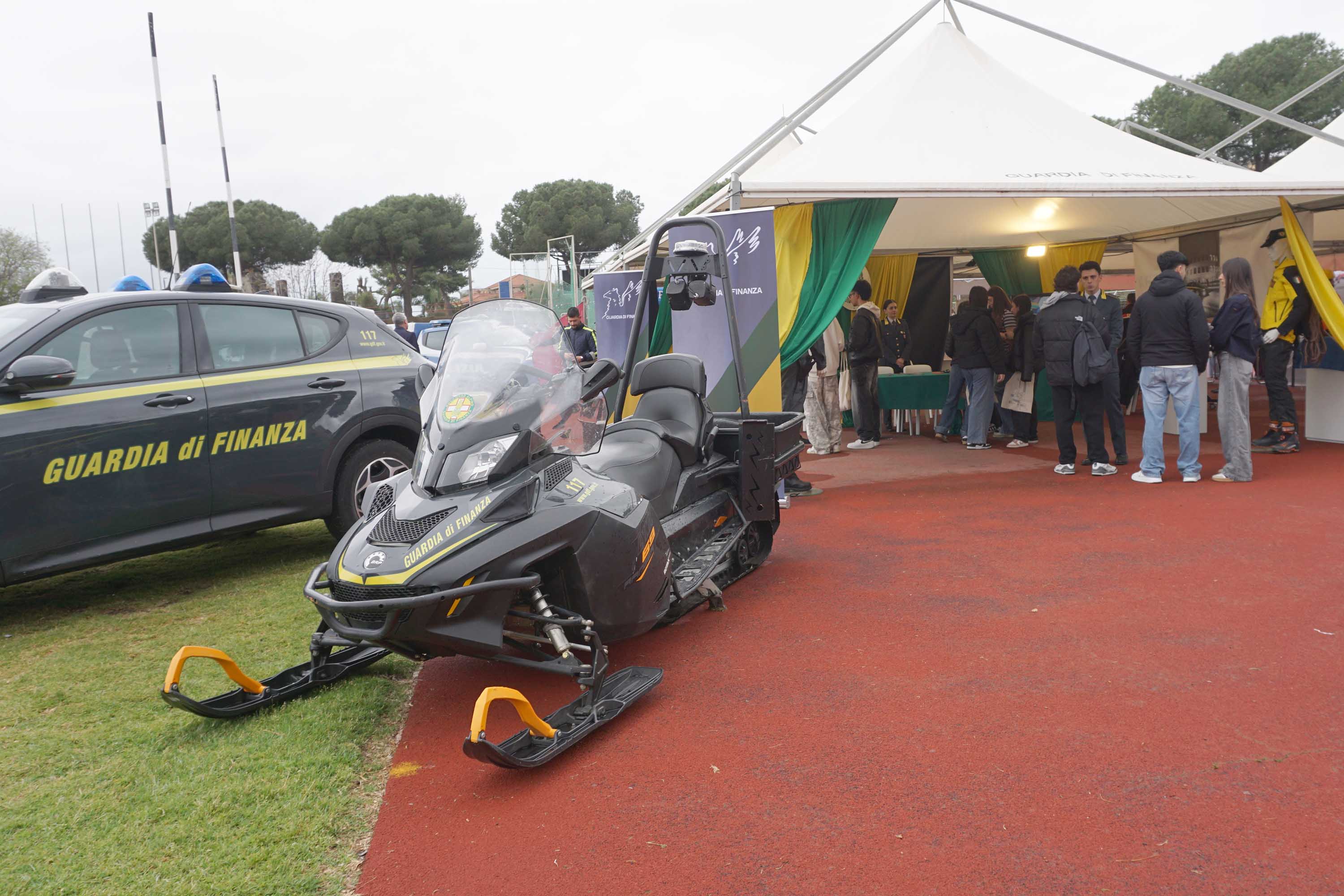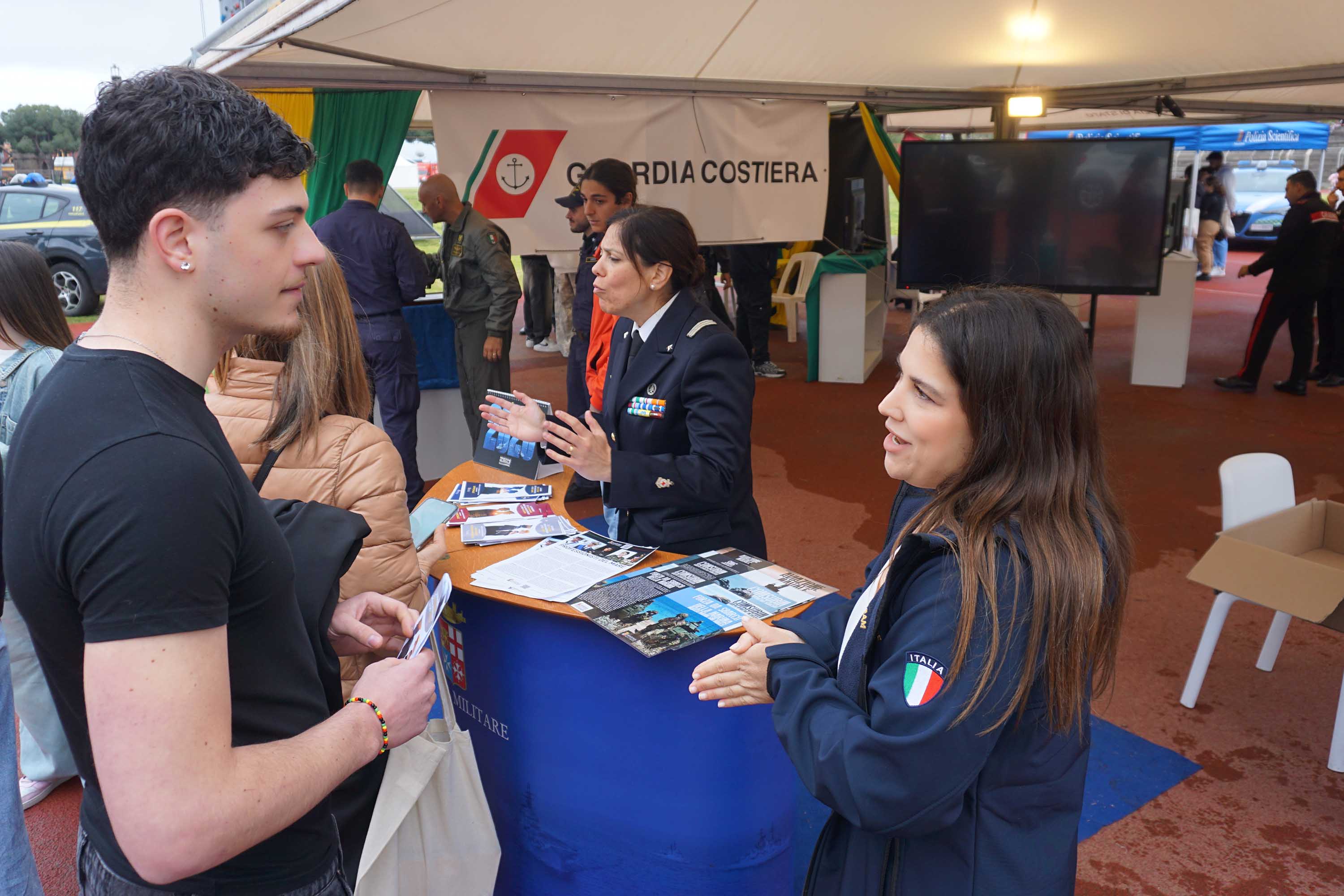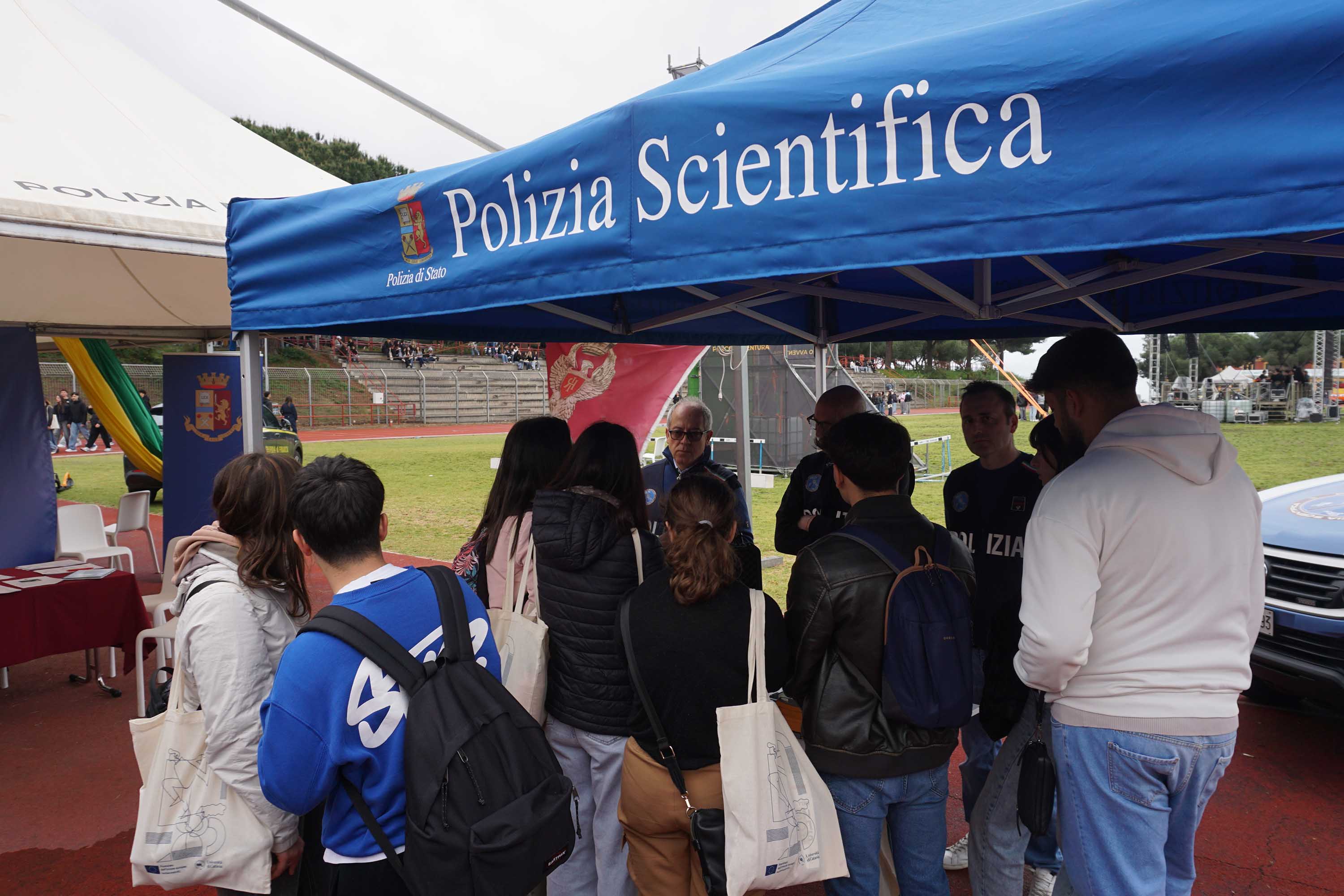 Lungo la pista del Cus Catania, gli stand dedicati hanno rappresentato uno dei poli di maggiore attrazione: qui studenti degli istituti superiori hanno potuto confrontarsi direttamente con il personale in servizio, ricevendo informazioni dettagliate su concorsi, percorsi formativi e opportunità di carriera.