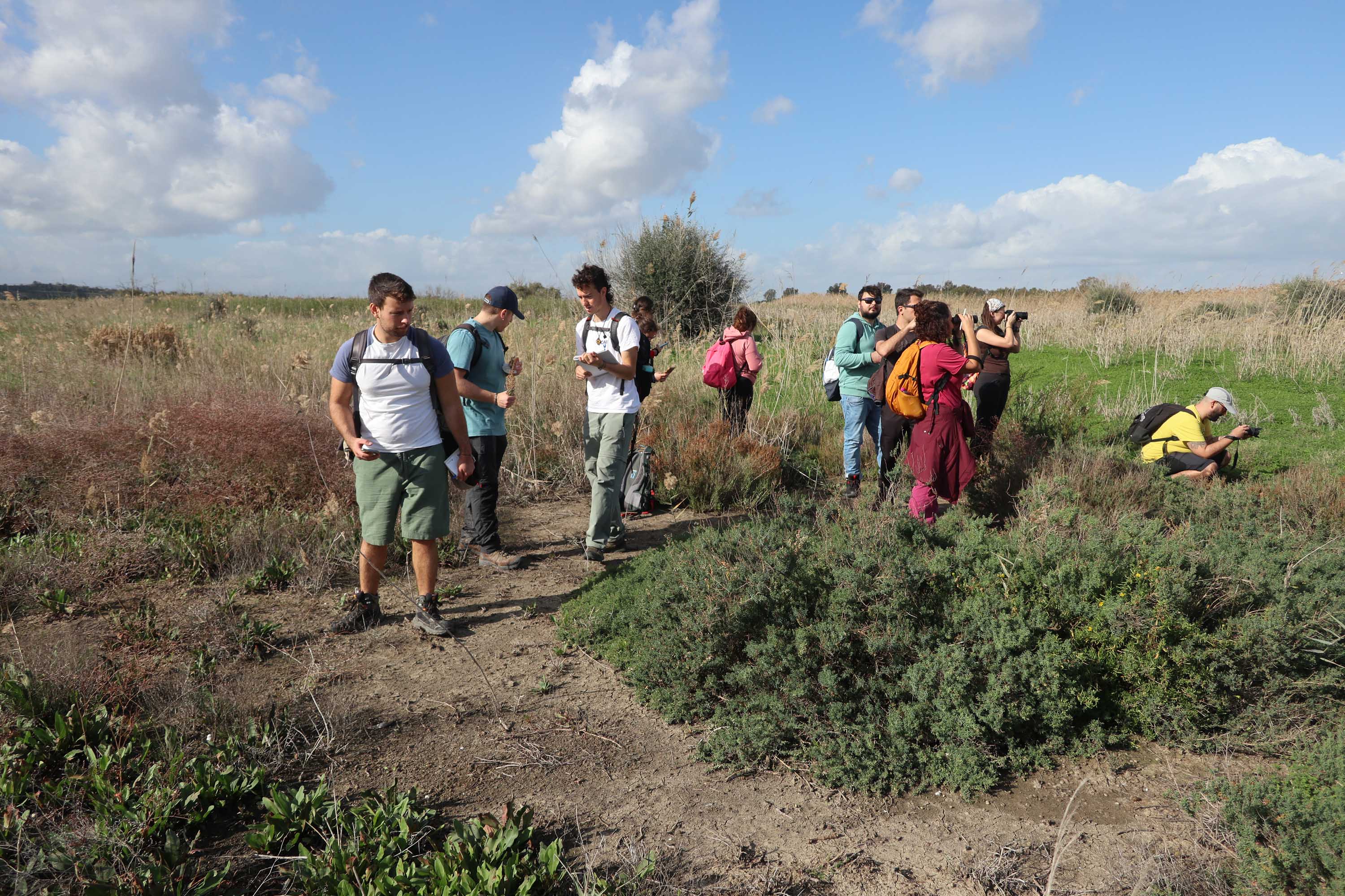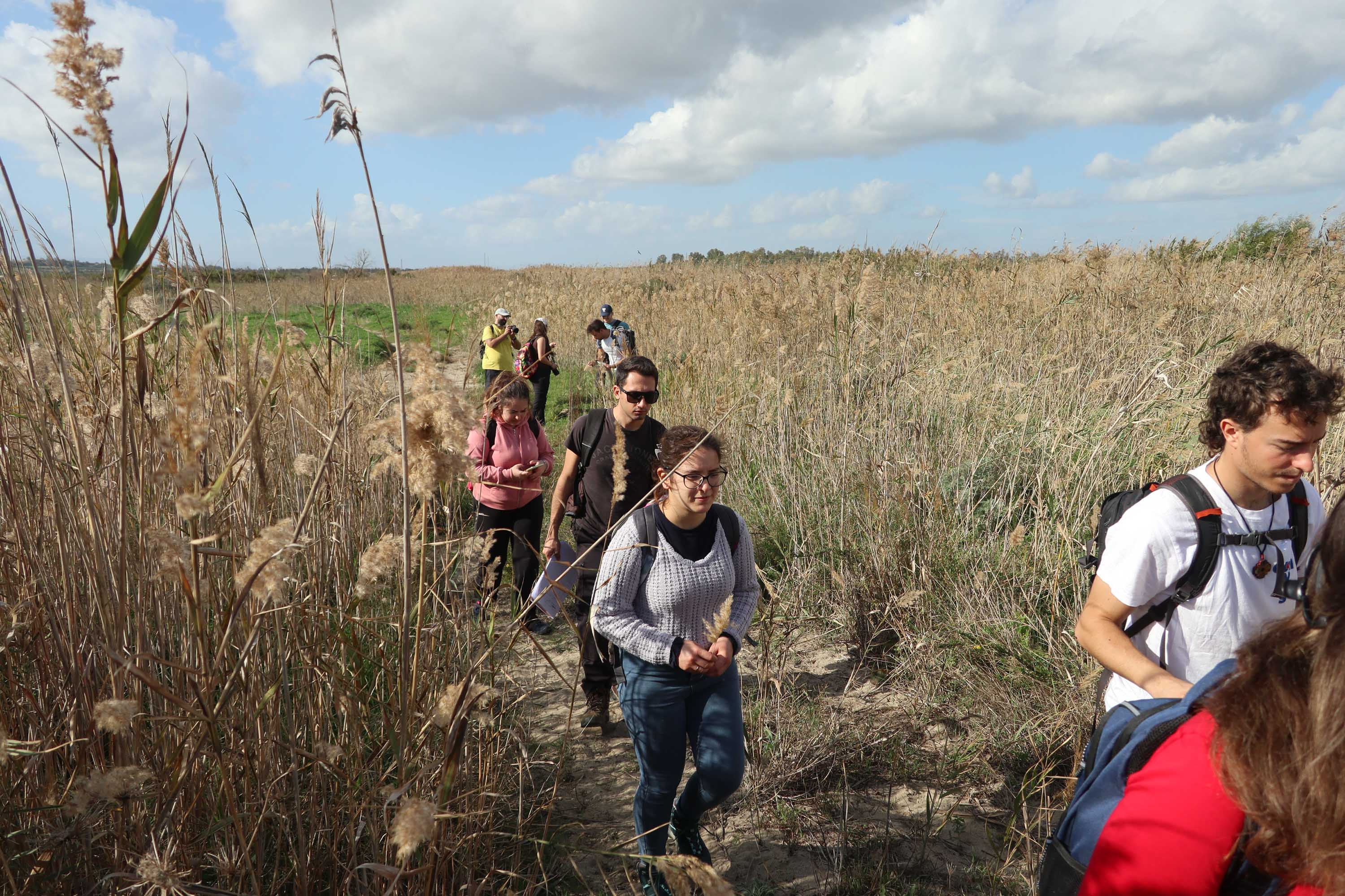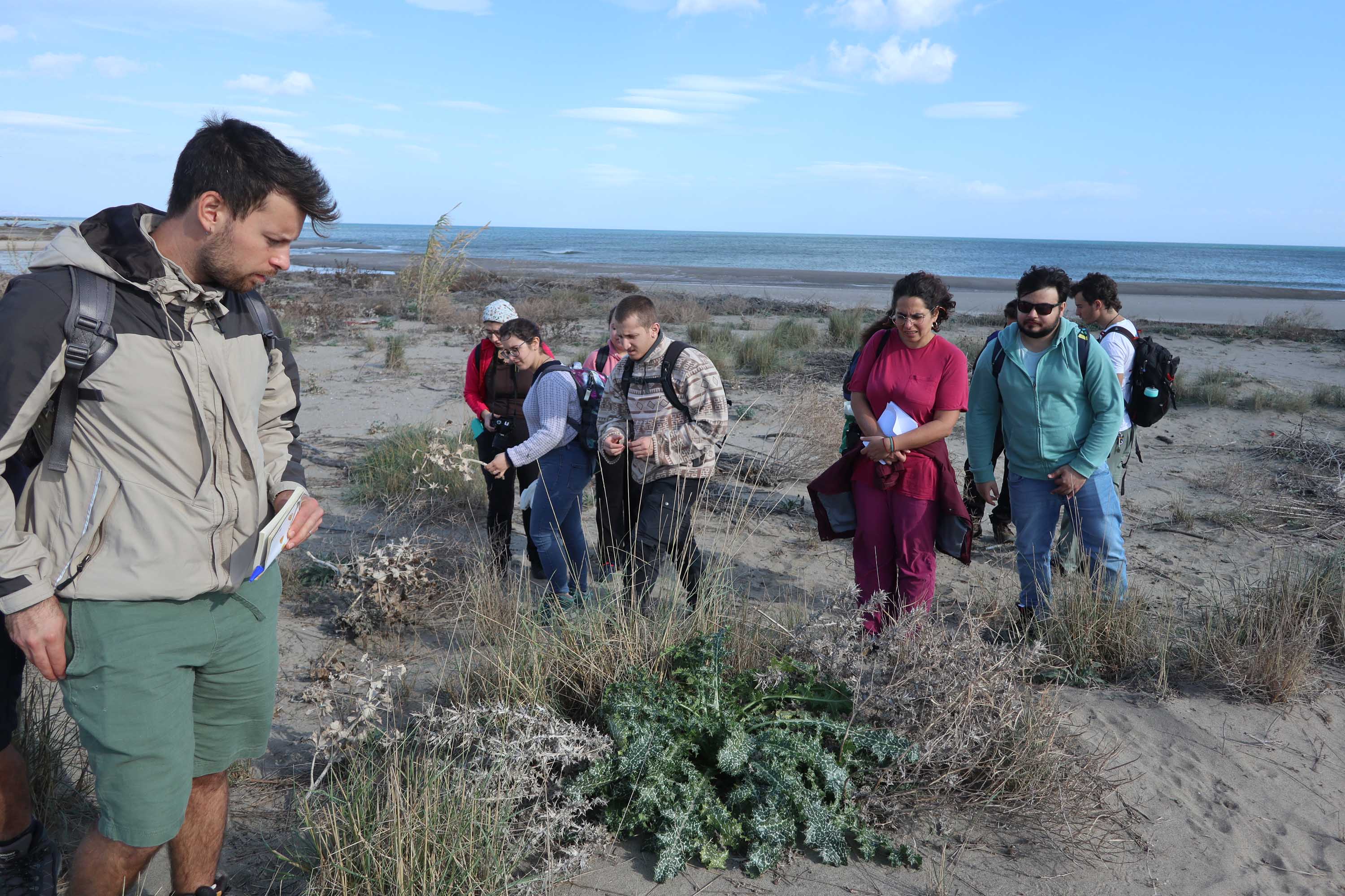Studenti in escursione lungo le dune costiere dell'Oasi del Simeto