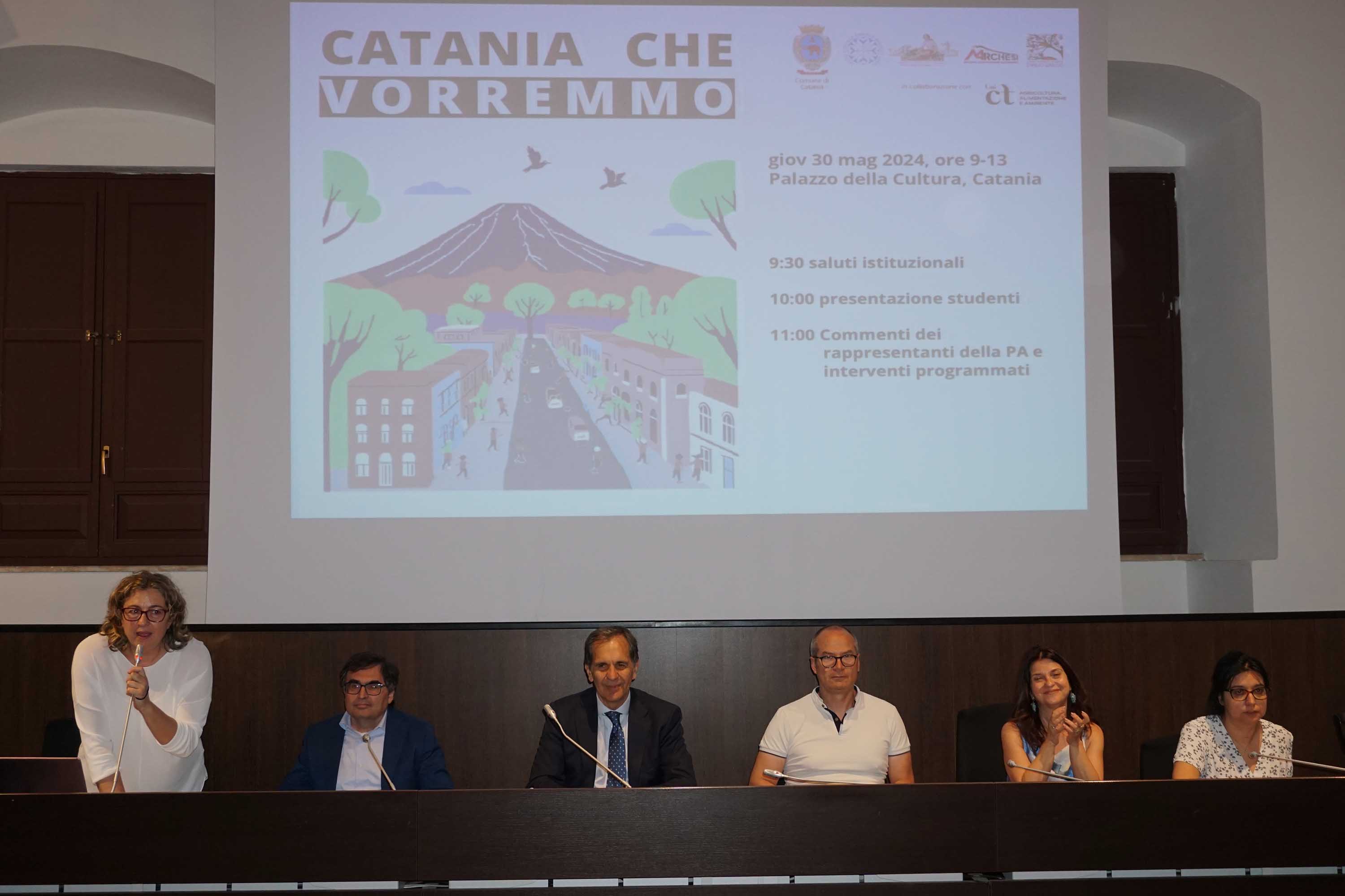 Nei giorni scorsi i giovani progettisti hanno avuto la straordinaria occasione di presentare i loro elaborati, nel salone del Palazzo della Cultura, ai massimi responsabili dell’amministrazione comunale di Catania: il sindaco Enrico Trantino, il vice-sindaco Paolo La Greca, il capo della Direzione urbanistica, pianificazione territoriale e decoro urbano Biagio Bisignani.