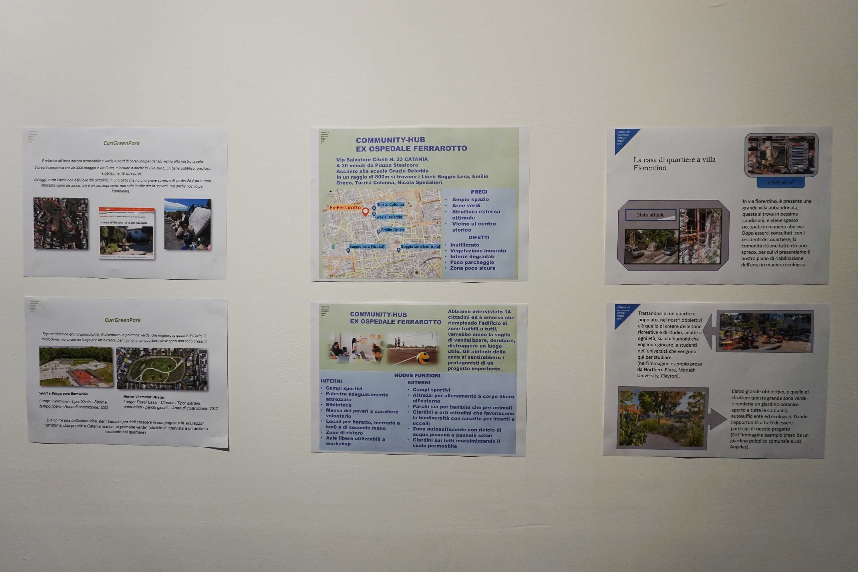 Case study del percorso per le competenze trasversali e per l'orientamento svolto con docenti e tutor dell’ateneo sono stati ospedali dismessi come il vecchio Ferrarotto, da sfruttare per un community hub, e il Vittorio Emanuele, l’enorme parcheggio dell’Amts in via Plebiscito che potrebbe ospitare uno students’ hub, un residuo fronte lavico nella zona di via Roccaromana che potrebbe diventare un Green Lava Space, gli spazi intorno al liceo Principe Umberto nel quartiere di Cibali (di cui si ritiene urgentissimo rendere sicuro l’accesso pedonale dalla scuola alla vicina stazione della metro).