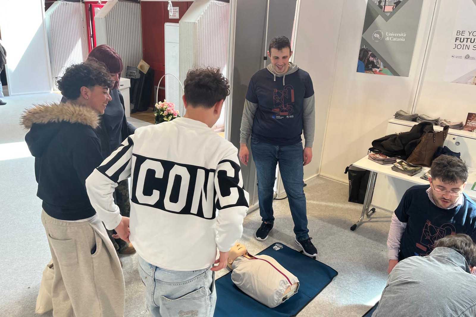 Studenti, docenti e specializzandi hanno guidato centinaia di visitatori tra dimostrazioni pratiche, tecnologie innovative e percorsi di studio d’eccellenza. Dal battito del cuore letto su un elettrocardiogramma alle manovre di emergenza, fino alla prevenzione e alla ricerca biomedica avanzata, lo stand 8 del Padiglione 2 - coordinato dalla delegata all'orientamento prof.ssa Alessandra Romano - si è trasformato nel luogo dove la passione dei giovani incontra la sanità di domani.