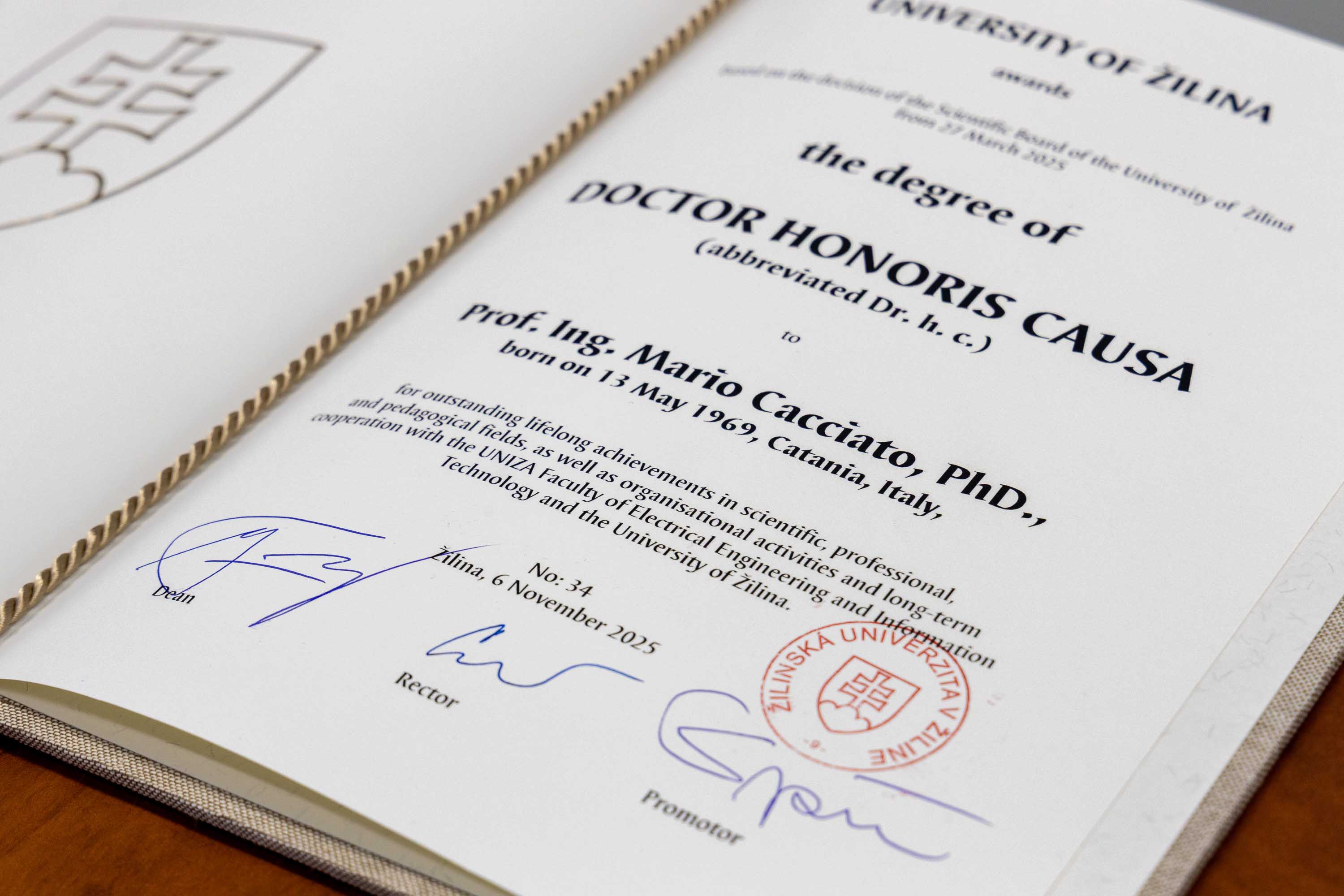 L’Università di Zilina in Slovacchia ha conferito la laurea honoris causa al prof. Mario Cacciato, ordinario di Convertitori, Macchine e Azionamenti elettrici al Dipartimento di Ingegneria Elettrica, Elettronica e Informatica dell’Università di Catania.