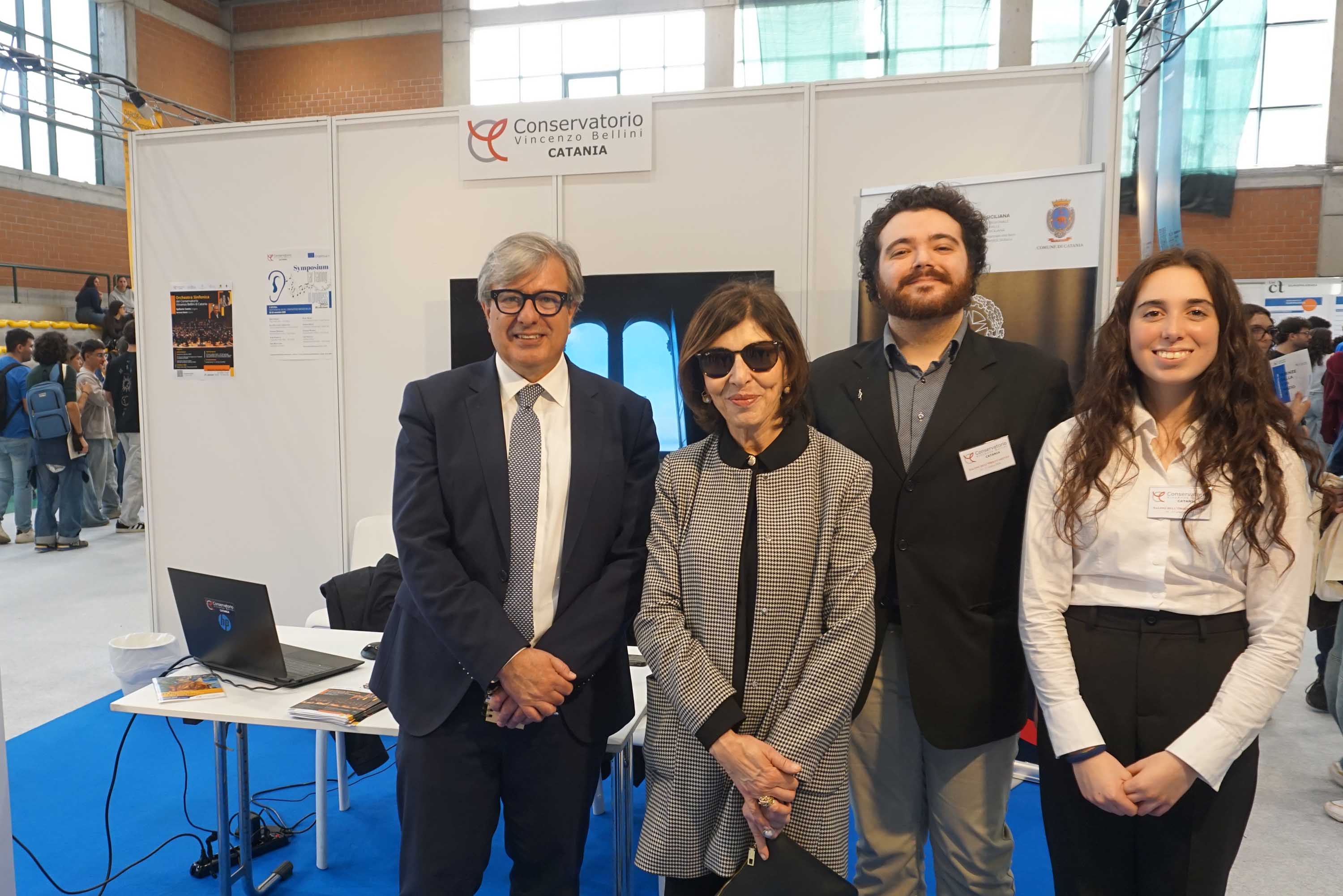 Il rettore Enrico Foti e la prorettrice Lina Scalisi in visita allo stand del Conservatorio Vincenzo Bellini di Catania