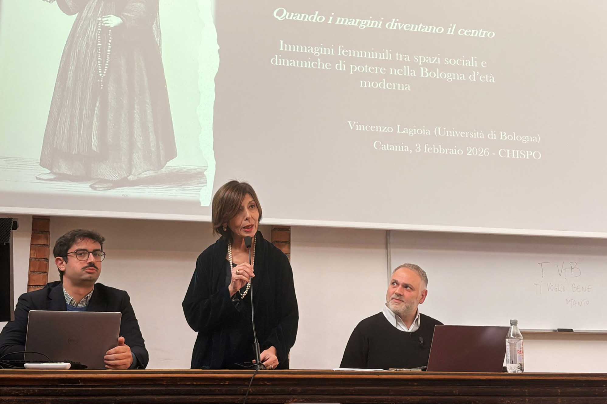 A offrirla agli studenti è stato il prof. Vincenzo Lagioia dell’Università di Bologna in occasione del seminario, intitolato Quando i margini diventano il centro. Immagini femminili tra spazi sociali e dinamiche di potere nella Bologna d’età moderna, nell’ambito del ciclo di seminari “Poteri, spazi, conflitti”, organizzato dal CHISPO - Center for History of Power, diretto dalla prof.ssa Lina Scalisi e coordinato dal dott. Giacomo Santoro.