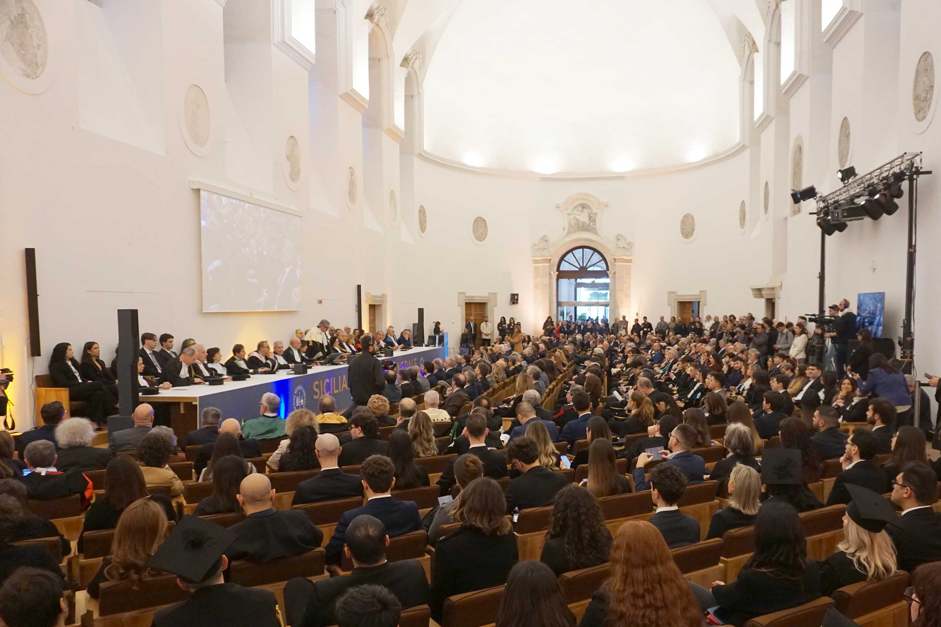 A rendere ancora più evidente la presenza viva della componente studentesca, la conduzione affidata agli speaker di Radio Zammù – Miriam Finocchiaro, studentessa del corso di laurea magistrale in Global Politics for Euro-Mediterranean Relations, e Demetrio Galvagno, studente di Scienze e lingue per la comunicazione – e l’intensa partecipazione del Coro d’Ateneo, formato da studentesse, studenti e membri della comunità universitaria.